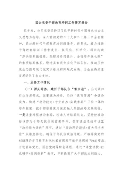 / 【七哥公文】2025年:国企党委干部教育培训工作情况报告+更多免费公文+VX:QiGeGongWen2024