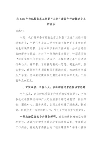 【七哥公文】2025年:在2025年市纪检监察工作暨“三化”建设年行动推进会上的讲话+更多免费公文+VX:QiGeGongWen2024