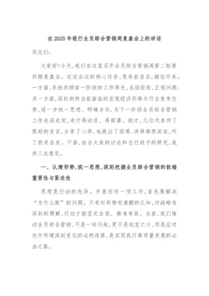 / 【七哥公文】2025年:在2025年银行全员综合营销周复盘会上的讲话+更多免费公文+VX:QiGeGongWen2024