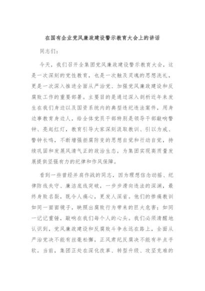 / 【七哥公文】2025年:在国有企业党风廉政建设警示教育大会上的讲话+更多免费公文+VX:QiGeGongWen2024