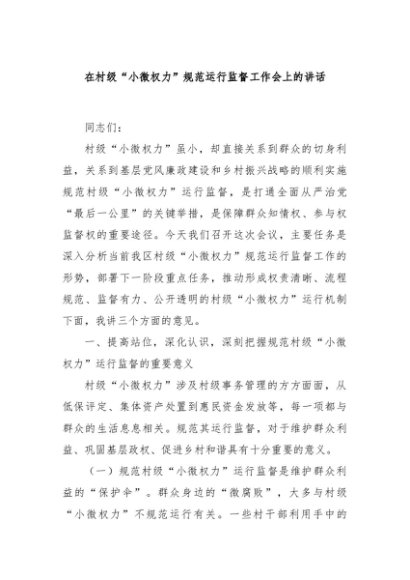 / 【七哥公文】2025年:在村级“小微权力”规范运行监督工作会上的讲话+更多免费公文+VX:QiGeGongWen2024