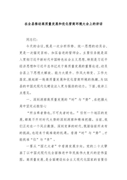 / 【七哥公文】2025年:在全县推动高质量发展和优化营商环境大会上的讲话+更多免费公文+VX:QiGeGongWen2024