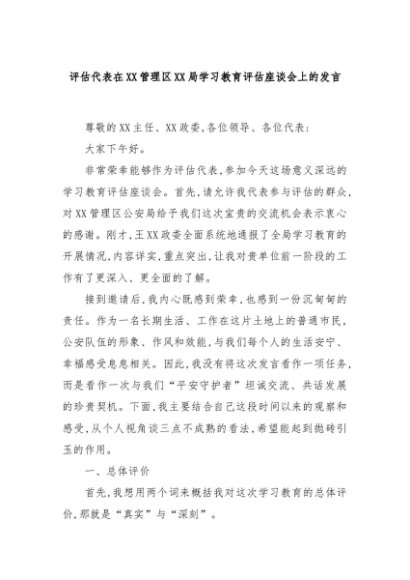 【七哥公文】2025年:评估代表在XX管理区XX局学习教育评估座谈会上的发言+更多免费公文+VX:QiGeGongWen2024