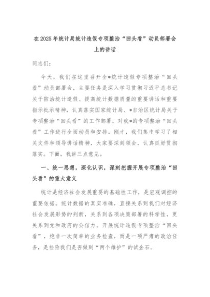 【七哥公文】2025年:在2025年统计局统计造假专项整治“回头看”动员部署会上的讲话+更多免费公文+VX:QiGeGongWen2024