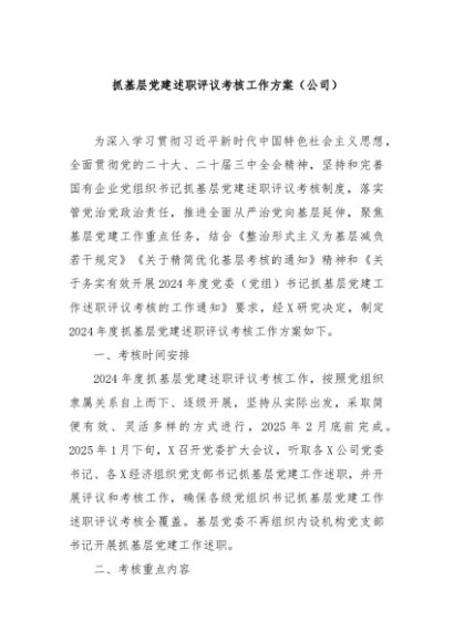 / 【七哥公文】2025年:抓基层党建述职评议考核工作方案(公司)+更多免费公文+VX:QiGeGongWen2024