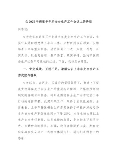 / 【七哥公文】2025年:在2025年街道半年度安全生产工作会议上的讲话+更多免费公文+VX:QiGeGongWen2024
