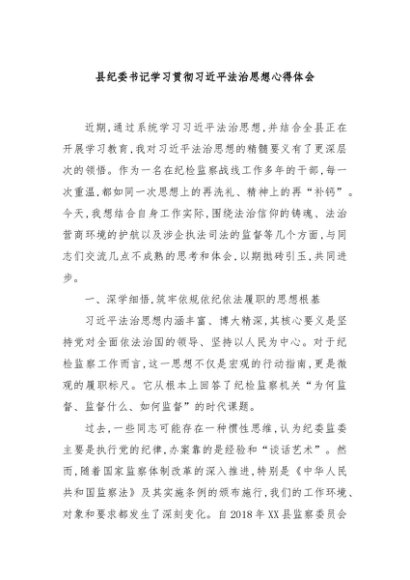 / 【七哥公文】2025年:县纪委书记学习贯彻习近平法治思想心得体会+更多免费公文+VX:QiGeGongWen2024