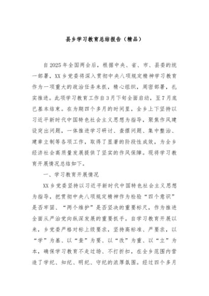 / 【七哥公文】2025年:县乡学习教育总结报告(精品)+更多免费公文+VX:QiGeGongWen2024