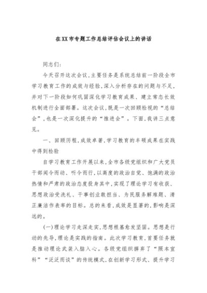 / 【七哥公文】2025年:在XX市专题工作总结评估会议上的讲话+更多免费公文+VX:QiGeGongWen2024