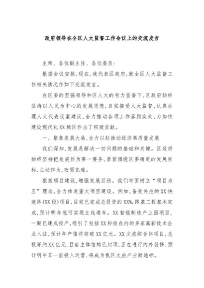 / 【七哥公文】2025年:政府领导在全区人大监督工作会议上的交流发言+更多免费公文+VX:QiGeGongWen2024