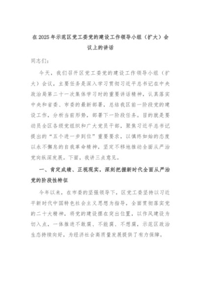 【七哥公文】2025年:在2025年示范区党工委党的建设工作领导小组(扩大)会议上的讲话+更多免费公文+VX:QiGeGongWen2024