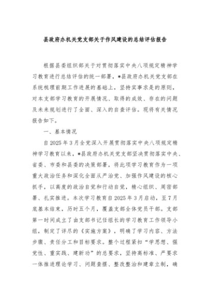 / 【七哥公文】2025年:县政府办机关党支部关于作风建设的总结评估报告+更多免费公文+VX:QiGeGongWen2024