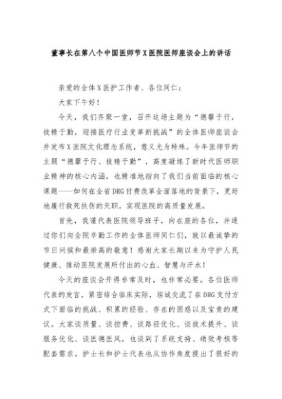 / 【七哥公文】2025年:董事长在第八个中国医师节X医院医师座谈会上的讲话+更多免费公文+VX:QiGeGongWen2024