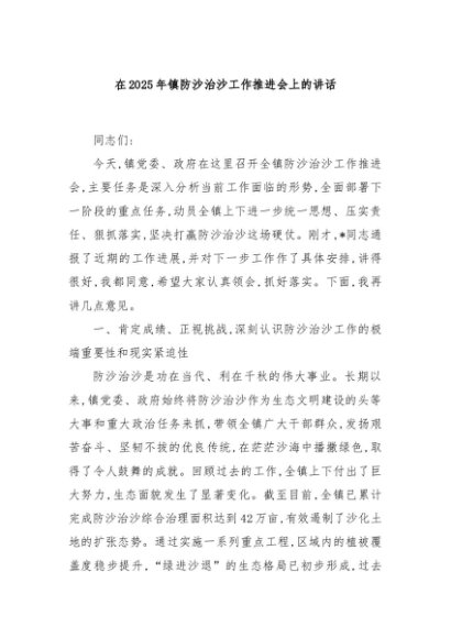 / 【七哥公文】2025年:在2025年镇防沙治沙工作推进会上的讲话+更多免费公文+VX:QiGeGongWen2024