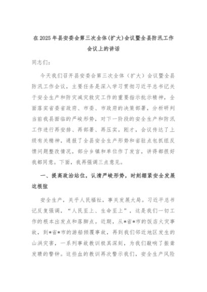 【七哥公文】2025年:在2025年县安委会第三次全体(扩大)会议暨全县防汛工作会议上的讲话+更多免费公文+VX:QiGeGongWen2024
