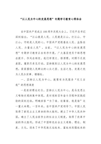 / 【七哥公文】2025年:“以人民为中心的发展思想”专题学习教育心得体会+更多免费公文+VX:QiGeGongWen2024