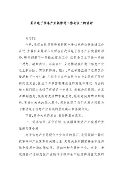 【七哥公文】2025年:某区电子信息产业链推进工作会议上的讲话+更多免费公文+VX:QiGeGongWen2024