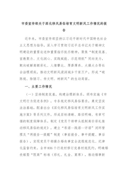 【七哥公文】2025年:市委宣传部关于深化移风易俗培育文明新风工作情况的报告+更多免费公文+VX:QiGeGongWen2024
