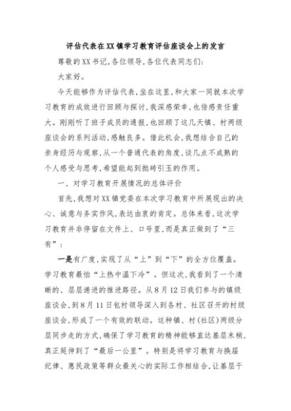 【七哥公文】2025年:评估代表在XX镇学习教育评估座谈会上的发言+更多免费公文+VX:QiGeGongWen2024