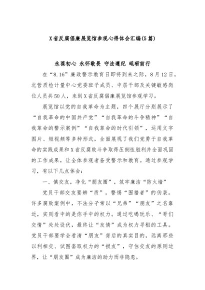 / 【七哥公文】2025年:(5篇)X省反腐倡廉展览馆参观心得体会汇编+更多免费公文+VX:QiGeGongWen2024