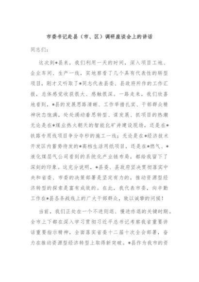 / 【七哥公文】2025年:市委书记赴县(市、区)调研座谈会上的讲话+更多免费公文+VX:QiGeGongWen2024