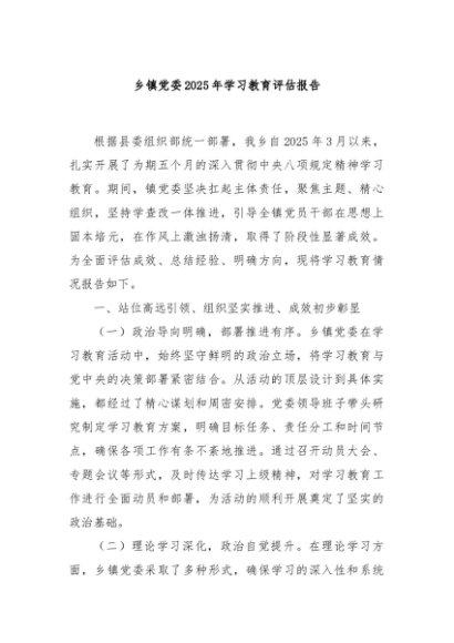 / 【七哥公文】2025年:乡镇党委2025年学习教育评估报告+更多免费公文+VX:QiGeGongWen2024