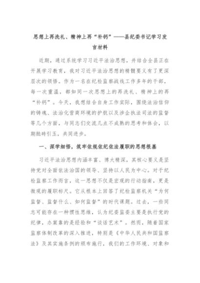 【七哥公文】2025年:思想上再洗礼、精神上再“补钙”——县纪委书记学习发言材料+更多免费公文+VX:QiGeGongWen2024