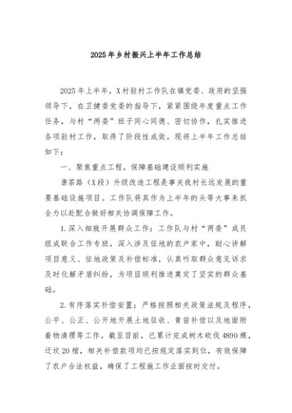 / 【七哥公文】2025年:2025年乡村振兴上半年工作总结+更多免费公文+VX:QiGeGongWen2024