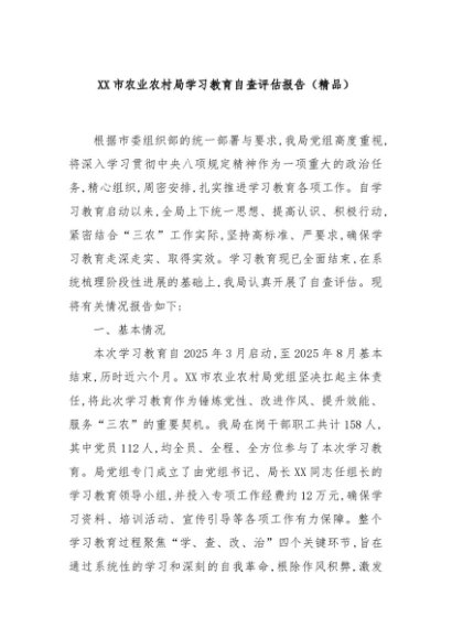 / 【七哥公文】2025年:XX市农业农村局学习教育自查评估报告(精品)+更多免费公文+VX:QiGeGongWen2024