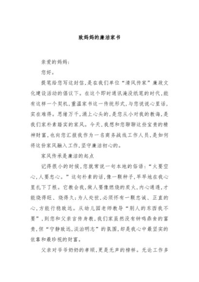 【七哥公文】2025年:致妈妈的廉洁家书+更多免费公文+VX:QiGeGongWen2024