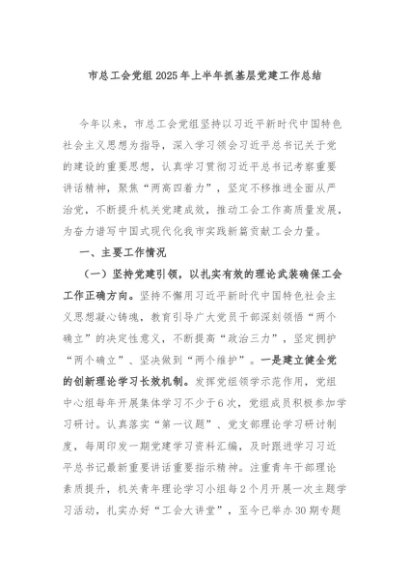 / 【七哥公文】2025年:市总工会党组2025年上半年抓基层党建工作总结+更多免费公文+VX:QiGeGongWen2024