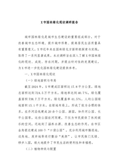 【七哥公文】2025年:X市园林绿化现状调研报告+更多免费公文+VX:QiGeGongWen2024