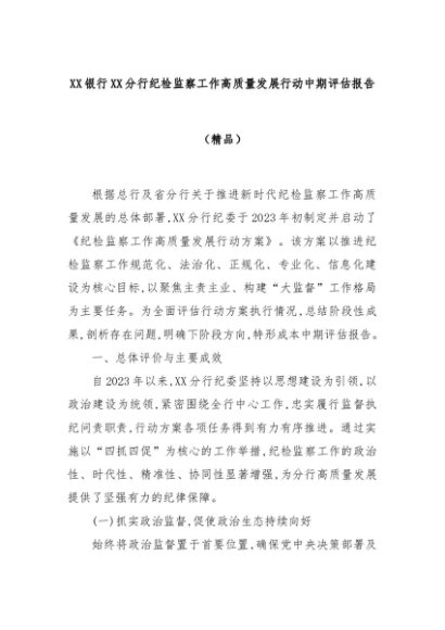 【七哥公文】2025年:XX银行XX分行纪检监察工作高质量发展行动中期评估报告(精品)+更多免费公文+VX:QiGeGongWen2024