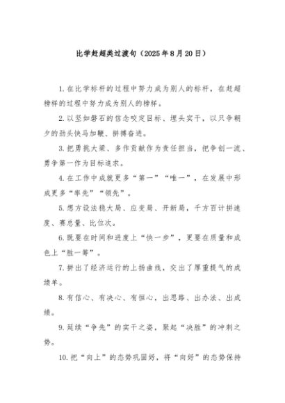 / 【七哥公文】2025年:比学赶超类过渡句(2025年8月20日)+更多免费公文+VX:QiGeGongWen2024