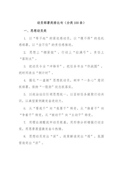 / 【七哥公文】2025年:动员部署类排比句(分类100条)+更多免费公文+VX:QiGeGongWen2024