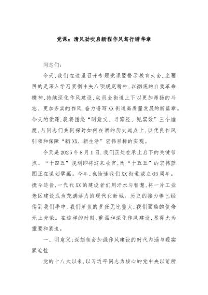 / 【七哥公文】2025年:党课:清风劲吹启新程作风笃行谱华章+更多免费公文+VX:QiGeGongWen2024