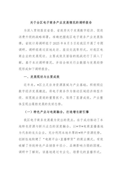 / 【七哥公文】2025年:关于全区电子商务产业发展情况的调研报告+更多免费公文+VX:QiGeGongWen2024