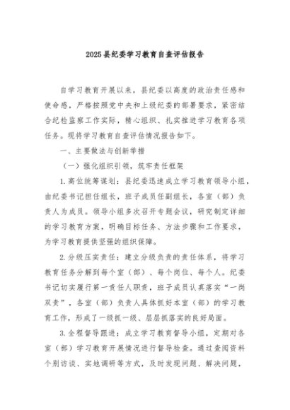 / 【七哥公文】2025年:2025县纪委学习教育自查评估报告+更多免费公文+VX:QiGeGongWen2024