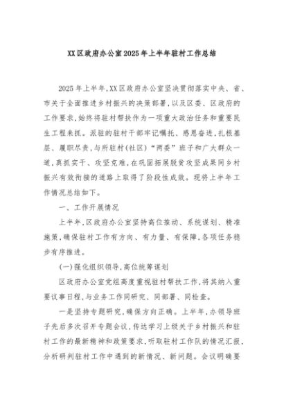 / 【七哥公文】2025年:XX区政府办公室2025年上半年驻村工作总结+更多免费公文+VX:QiGeGongWen2024