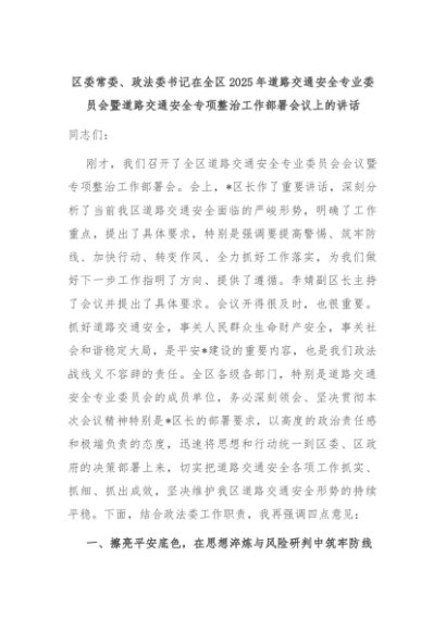 【七哥公文】2025年:区委常委、政法委书记在全区2025年道路交通安全专业委员会暨道路交通安全专项整治工作部署会议上的讲话+更多免费公文+VX:QiGeGongWen2024