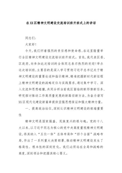 / 【七哥公文】2025年:在XX区精神文明建设交流培训班开班式上的讲话+更多免费公文+VX:QiGeGongWen2024