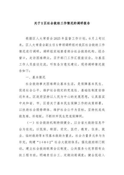 / 【七哥公文】2025年:关于X区社会救助工作情况的调研报告+更多免费公文+VX:QiGeGongWen2024