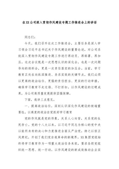 / 【七哥公文】2025年:在XX公司深入贯彻作风建设专题工作推进会上的讲话+更多免费公文+VX:QiGeGongWen2024