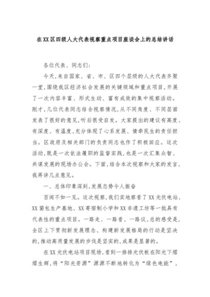 【七哥公文】2025年:在XX区四级人大代表视察重点项目座谈会上的总结讲话+更多免费公文+VX:QiGeGongWen2024