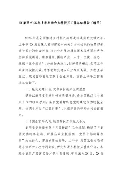 【七哥公文】2025年:XX集团2025年上半年助力乡村振兴工作总结报告(精品)+更多免费公文+VX:QiGeGongWen2024