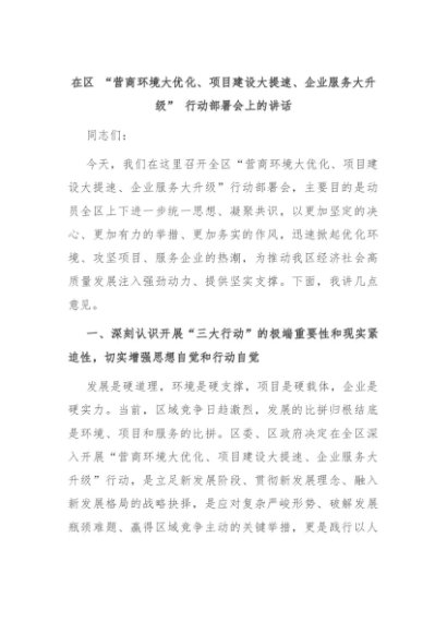 【七哥公文】2025年:在区 “营商环境大优化、项目建设大提速、企业服务大升级” 行动部署会上的讲话+更多免费公文+VX:QiGeGongWen2024