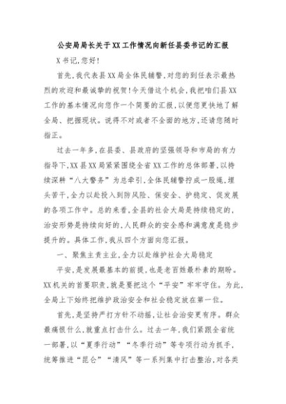 / 【七哥公文】2025年:公安局局长关于XX工作情况向新任县委书记的汇报+更多免费公文+VX:QiGeGongWen2024