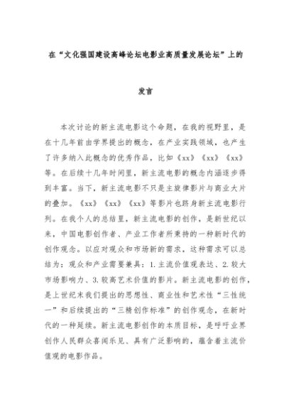【七哥公文】2025年:在“文化强国建设高峰论坛电影业高质量发展论坛”上的发言+更多免费公文+VX:QiGeGongWen2024