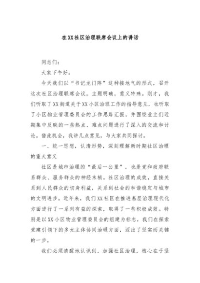/ 【七哥公文】2025年:在XX社区治理联席会议上的讲话+更多免费公文+VX:QiGeGongWen2024
