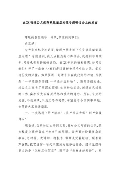 / 【七哥公文】2025年:在XX街道公文规范赋能基层治理专题研讨会上的发言+更多免费公文+VX:QiGeGongWen2024